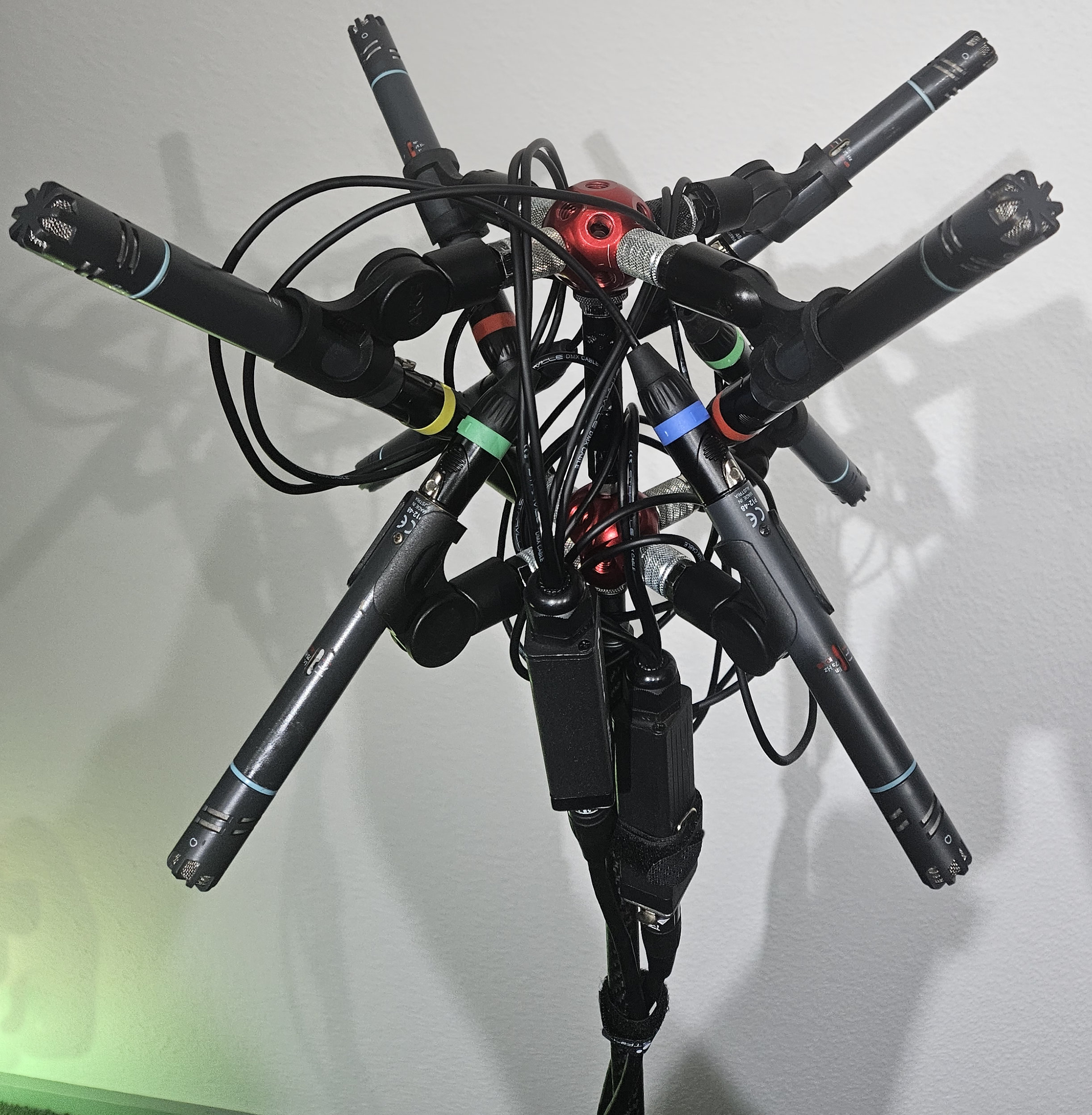 But a regular camera tripod is too close to the microphones pointing down. We are confident to find a solution for this, but it is not done yet.