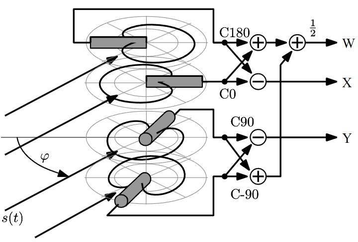 But as you can see here already, the four capsules of the microphones are on the same z-axys and are coherent. The "decoding" could be done easily by hand, even on an analog console, if you have to,