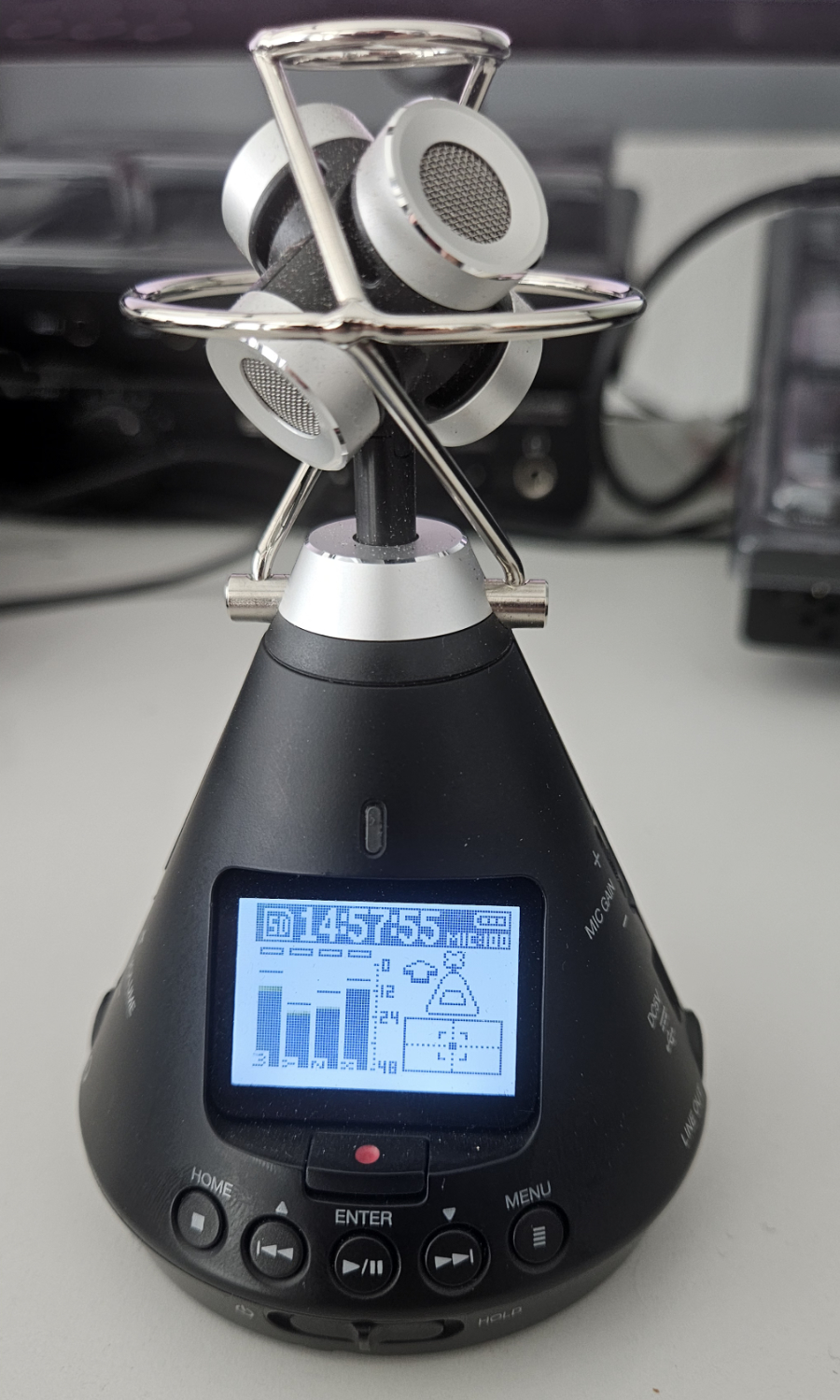 If you like this, you can get the Zoom H3-VR at almost any music gear shop for about 250$. We recommend to have at least four AA rechargeable batteries with you, where ever you will go. For convenience and faster setup times, we also recommend to have another set of four batteries at home in the recharger.