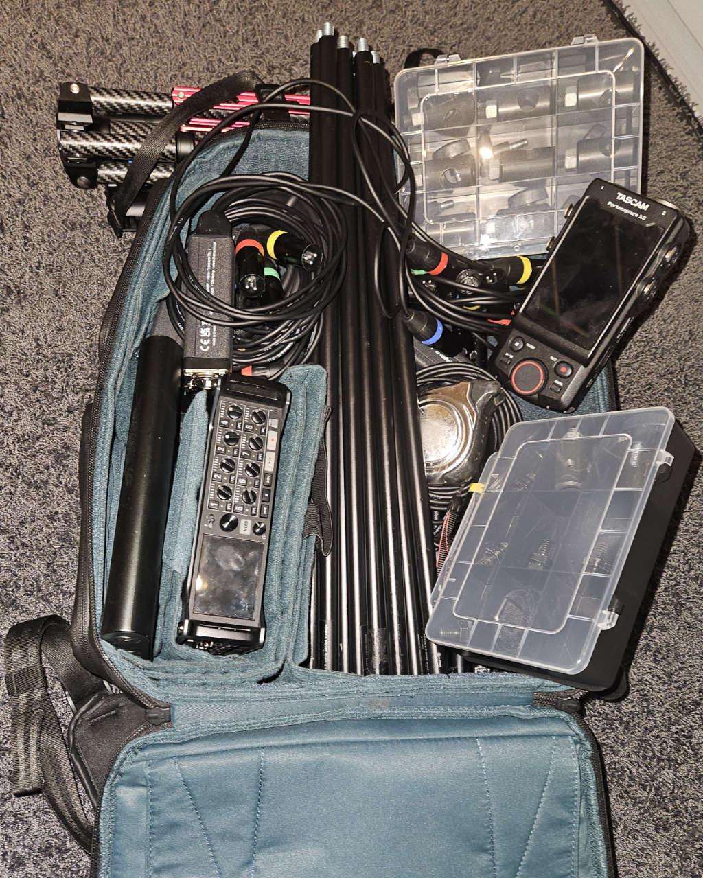 The problem is the three multicore cables. They are really difficult to attach and make the whole thing a little unstable to carry. But it works.